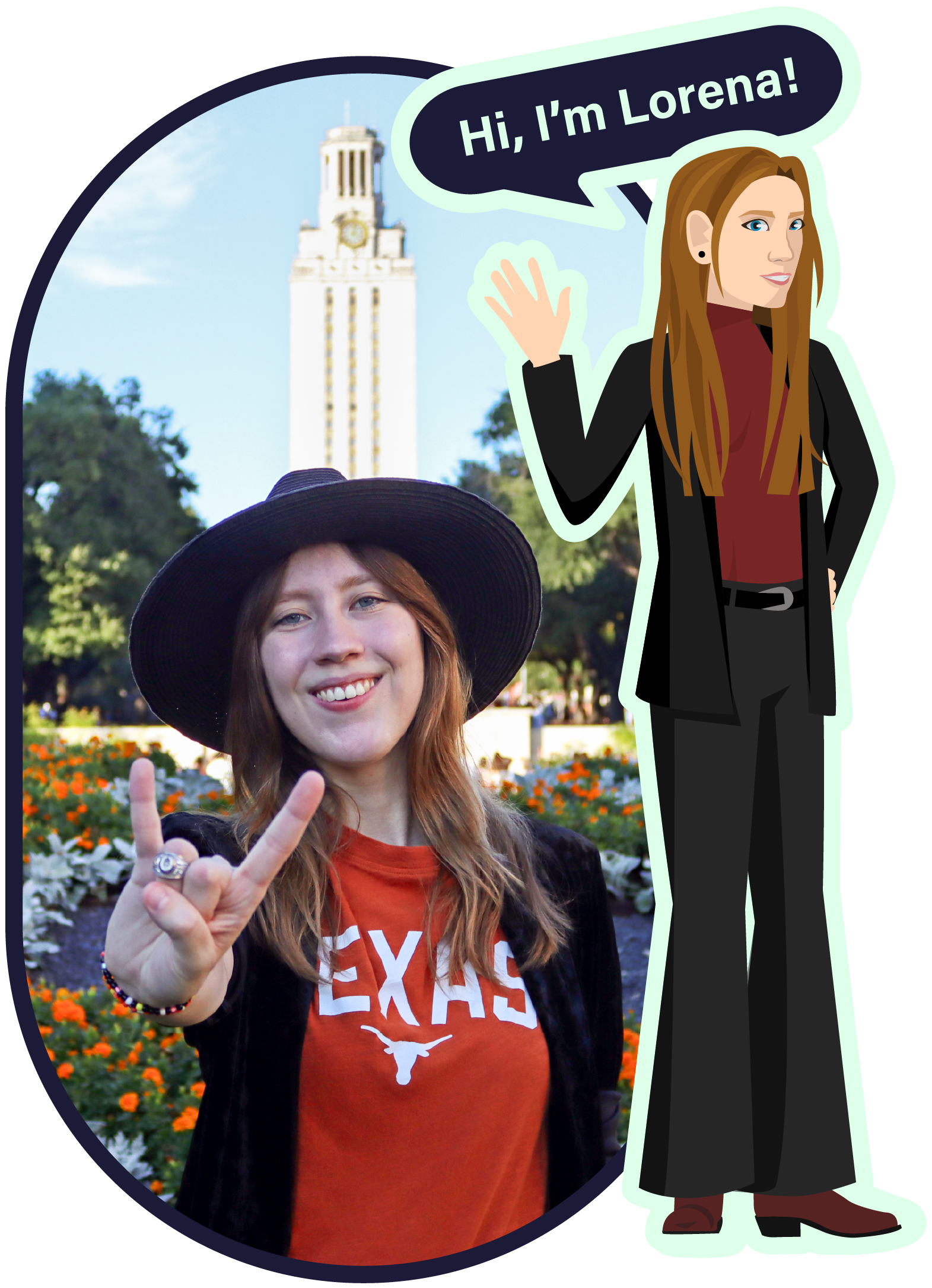 Hi, I’m Lorena! I’m an award-winning filmmaker and graphic designer with a BS in Radio-Television-Film and a certificate in Digital Arts and Media from the University of Texas at Austin.